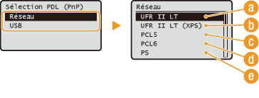 Sélectionnez <Réseau> ou <USB>