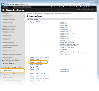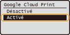Si vous voulez désactiver la fonction Google Cloud Print, sélectionnez <Désactivé>.