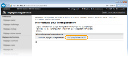 Cliquez sur le lien de l'URL qui s'affiche dans [Lien vers la page d'enregistrement :].