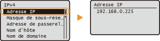 L'adresse IP n'est pas correctement configurée si "0.0.0.0" s'affiche.