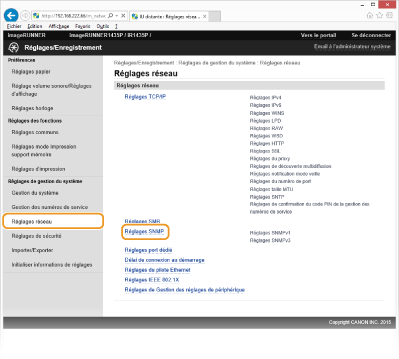 Utilisation du panneau de commandeVous pouvez activer ou désactiver les réglages SNMP à partir de