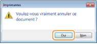 Annulation à partir d'une applicationDans certaines applications, un écran similaire à celui qui est représenté ci-dessous apparaît. Vous pouvez annuler l'impression en cliquant sur [Annuler].