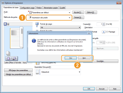 Sélectionnez [Impression sécurisée] en tant que [Méthode de sortie].
