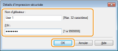 Vérifiez le nom du document, le nom d'utilisateur et le code PIN, puis cliquez sur [OK].
