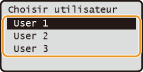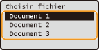 Si les documents sécurisés de deux ou plusieurs utilisateurs sont placés en mémoire, l'écran <Choisir utilisateur> s'affiche avant l'écran <Choisir fichier>. Utilisez