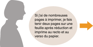 Enregistrez la combinaison de [2 sur 1] et [Impression recto verso] en tant que "profil" et sélectionnez ce profil lorsque vous en avez besoin. Enregistrement de combinaisons de réglages d'impression couramment utilisés