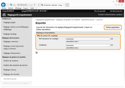 Saisissez le mot de passe de cryptage et cliquez sur [Début exportation].