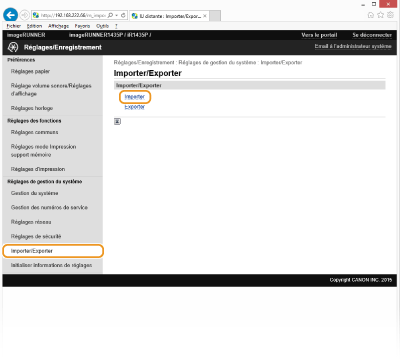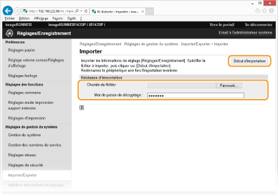 Spécifiez les réglages de l'importation et cliquez sur [Début d'importation].