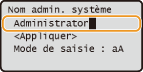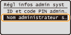Sélectionnez <Nom administrateur système> et appuyez sur  .
