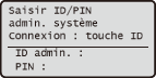 Spécifiez le <ID administ. système>, puis le <PIN admin. système>.