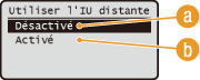 Sélectionnez <Réglages IU distante>