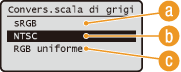 Selezionare <sRGB>, <NTSC> o <RGB uniforme>