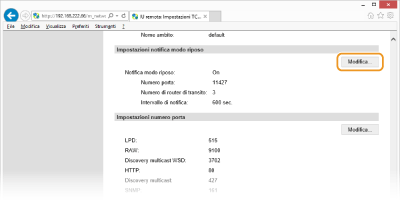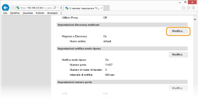 Fare clic su [Modifica...] in [Impostazioni discovery multicast].