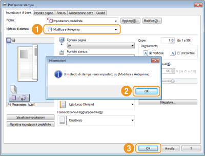 Selezionare [Modifica e Anteprima] in [Metodo di stampa].