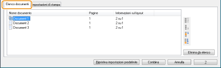 Dall'elenco [Nome documento], selezionare il lavoro di stampa per il documento combinato da stampare, quindi fare clic su