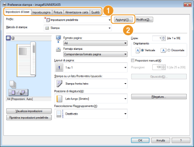 Modificare le impostazioni da registrare come profilo e fare clic su [Aggiungi].