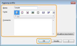 Facendo clic su [Modifica] a destra di [Aggiungi] sulla schermata illustrata al passo 1, è possibile modificare nome, icona o commento dei profili registrati in precedenza. Non è possibile modificare i profili preregistrati.