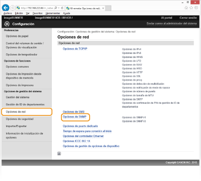 Uso del panel de controlPuede activar o desactivar la configuración de SNMP en