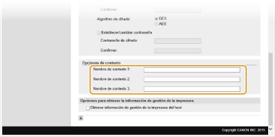 Introduzca hasta 32 caracteres alfanuméricos en el nombre de contexto. Es posible registrar hasta tres nombres de contexto. |