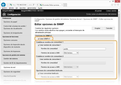 Seleccione la casilla de verificación [Usar SNMPv1].