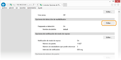 Haga clic en [Editar...] en [Opciones de detección de multidifusión].