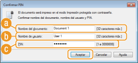 Compruebe el nombre del documento, el nombre de usuario y el PIN, y haga clic en [Aceptar].