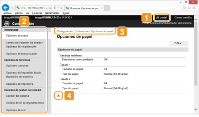 Puede especificar la configuración en [Opciones de gestión del sistema] solo cuando inicie sesión en el modo Administrador del sistema.