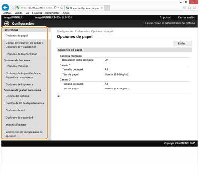 Puede cambiar la configuración en [Opciones de gestión del sistema] solo cuando inicie sesión en el modo Administrador del sistema.