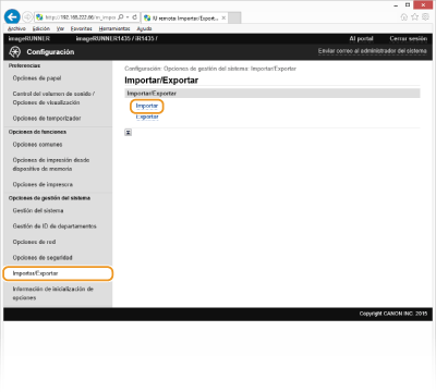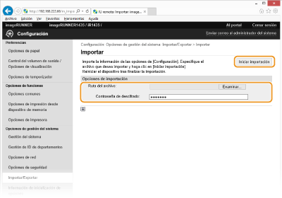 Especifique las opciones que desee importar y haga clic en [Iniciar importación].