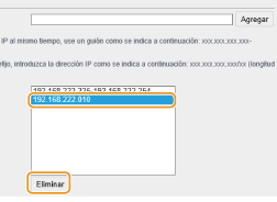 Seleccione una dirección IP y haga clic en [Eliminar]. ![]() |