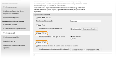 Seleccione la casilla de verificación [Usar TTLS] o [Usar PEAP].