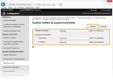 Configure el nombre de usuario/la contraseña y haga clic en [Aceptar].