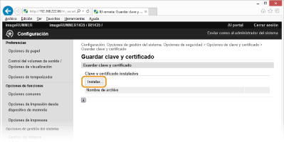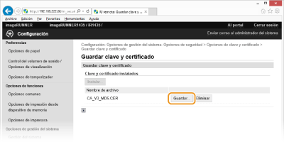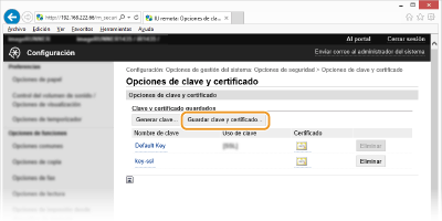 Haga clic en [Guardar clave y certificado] o [Guardar certificado de CA].
