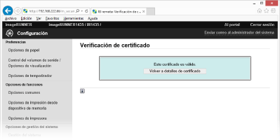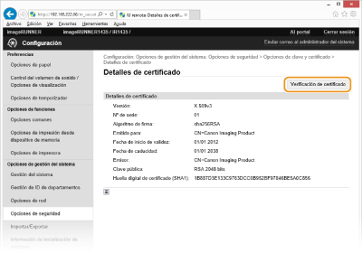 Haga clic en [Verificación de certificado].