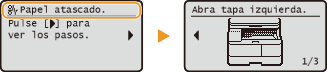 Si se produce un atasco de papel, <Papel atascado.> aparecerá en la pantalla. Pulse