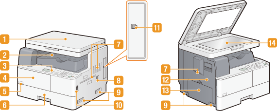 The operation panel consists of keys such as the numeric keys and [Start] key, a display, and status indicators. You can perform all the operations and specify settings from the operation panel.