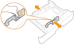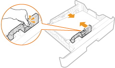 Press the lock release lever and slide the paper guides inward until they are aligned securely against the edges of the paper.