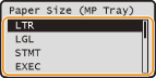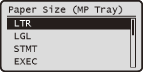 If the screen shown above is not displayed when paper is loadedIf you always load the same paper in the multi-purpose tray, you can skip the paper setting operations by registering the paper size and type as the default setting. When the default setting is registered, however, the screen shown above is not displayed. To display the screen, select <Off> for <Register Default Set.> (Registering Default Paper Settings for the Multi-Purpose Tray).