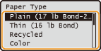 If the <Select Paper> screen shown below is displayed, use / to select <Paper Settings>, and press .