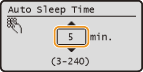 on the operation panel. You can also use the <Auto Sleep Time> setting to automatically put the machine into sleep mode if it remains idle for a specified period of time.