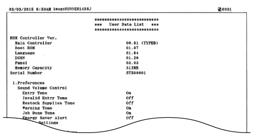This list does not include the setting information for <System Management Settings>. To check all setting items, print the System Manage Data List.