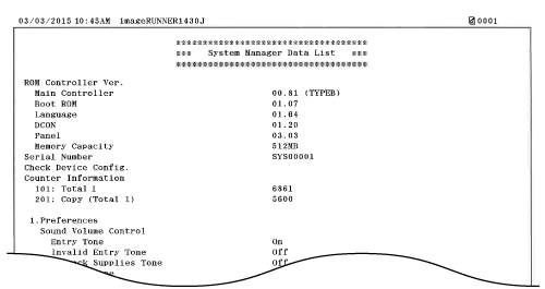 Setting Menu List) and current settings registered in the machine, such as paper size and type. You can also check the setting information for <System Management Settings> that is not included in the User Data List (