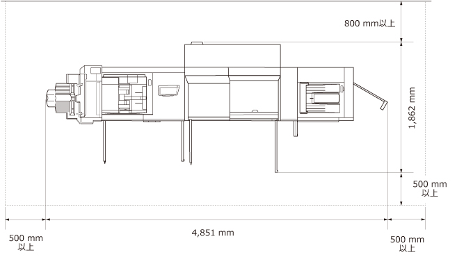 製品の背面と壁との間には、800 mm以上のスペースをとってください。
