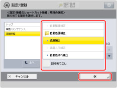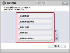 [設定/登録のショートカット]に、よく使う設定/登録の項目へのショートカットを登録できます。設定/登録画面を表示することなく、目的の項目を直接呼び出せます。