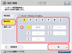 [曜日指定]を選択した場合は、曜日([日]~[土])を選択して、番号([1]~[5])を押します。