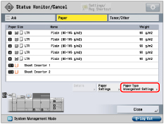 [Paper Type Management Settings] is displayed when you log in as an administrator.