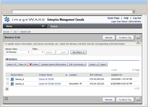 imageWARE Enterprise Management Console is utility software which enables integrated management of a printing environment.