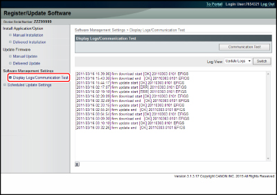 Press [Software Management Settings] → [Select Log Display] → [Display Update Logs].