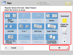 Press [Register Options Shortcuts].