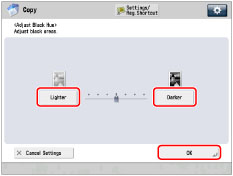 Press [Lighter] or [Darker] to adjust the hue of the black colour → press [OK].